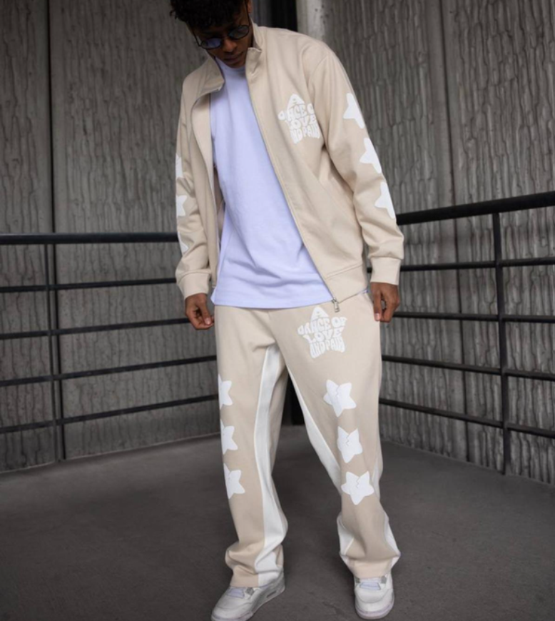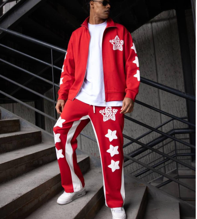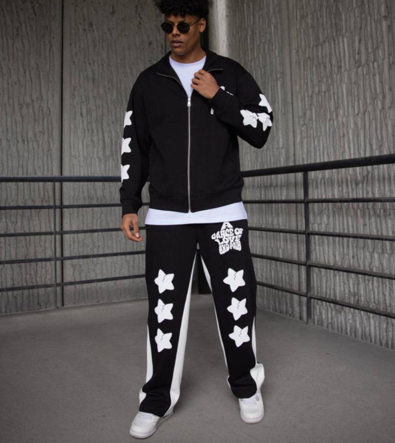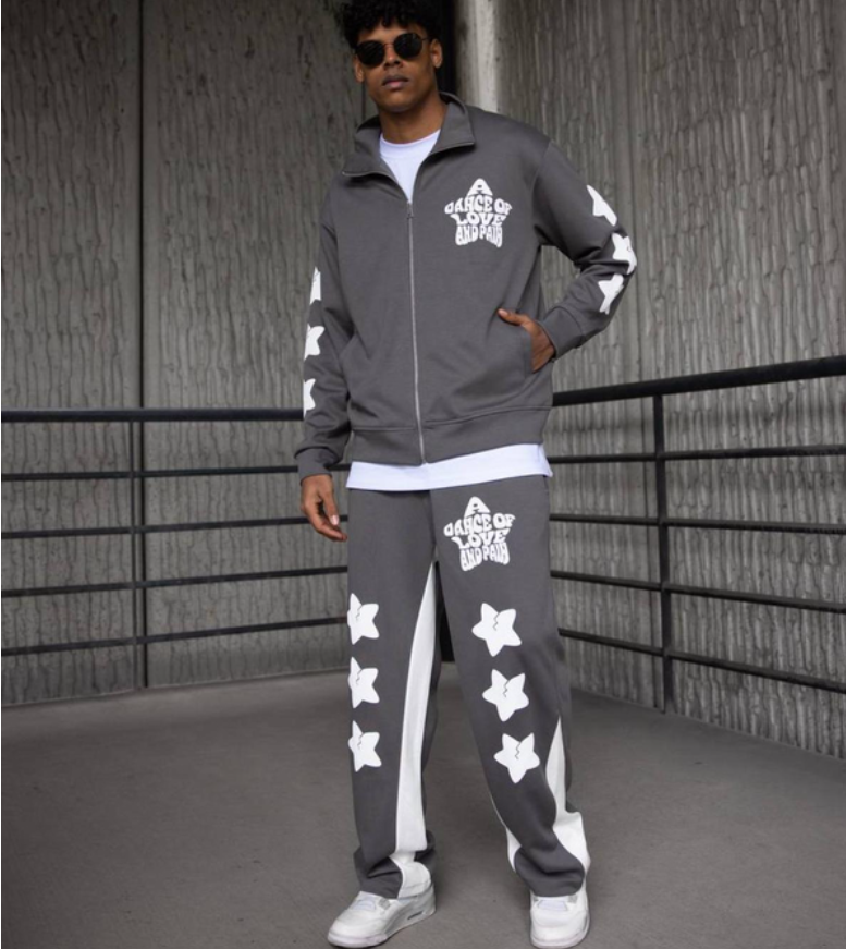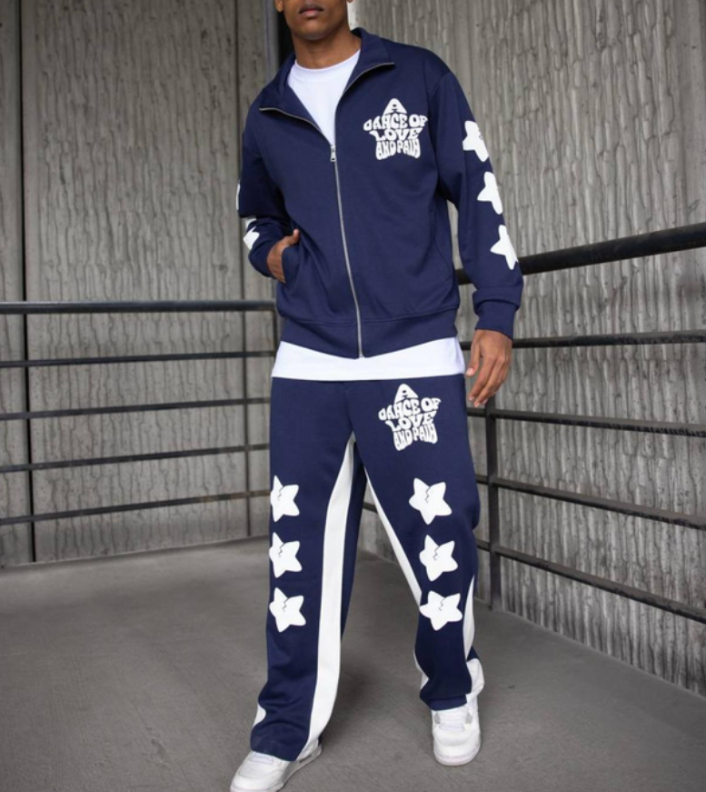 Ensemble bleu marine, disponible en noir, gris, bleu claire, beige, rouge